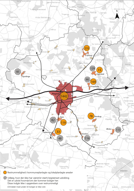 Den samlede restrummelighed for Ringsted by og byzonelandsbyerne udgør 2.071 boliger.