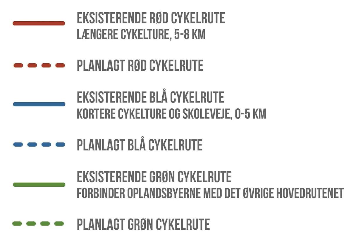 Cykelstrategiens indsats dækker således alene det overordnede cykelrutenet.