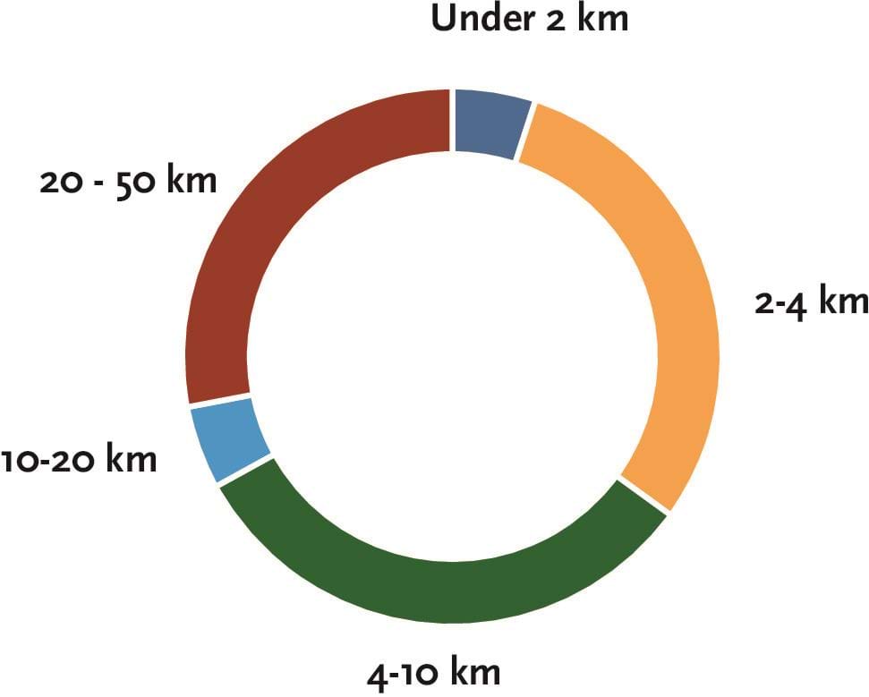 De fleste af cykelturene sker mellem henholdsvis hjem og arbejde samt til indkøb og øvrige ærinder.