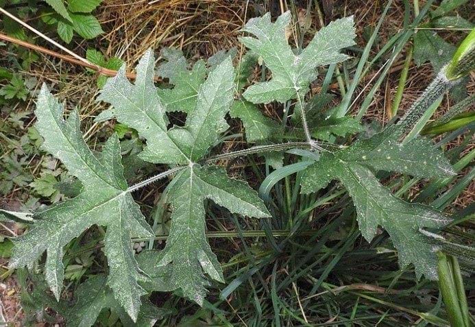 - Bladet er op til 1,5 meter langt med kraftigt tandede afsnit, det er glat på oversiden og på undersiden er der dunede små kirtelhår (foto 2 + 4).