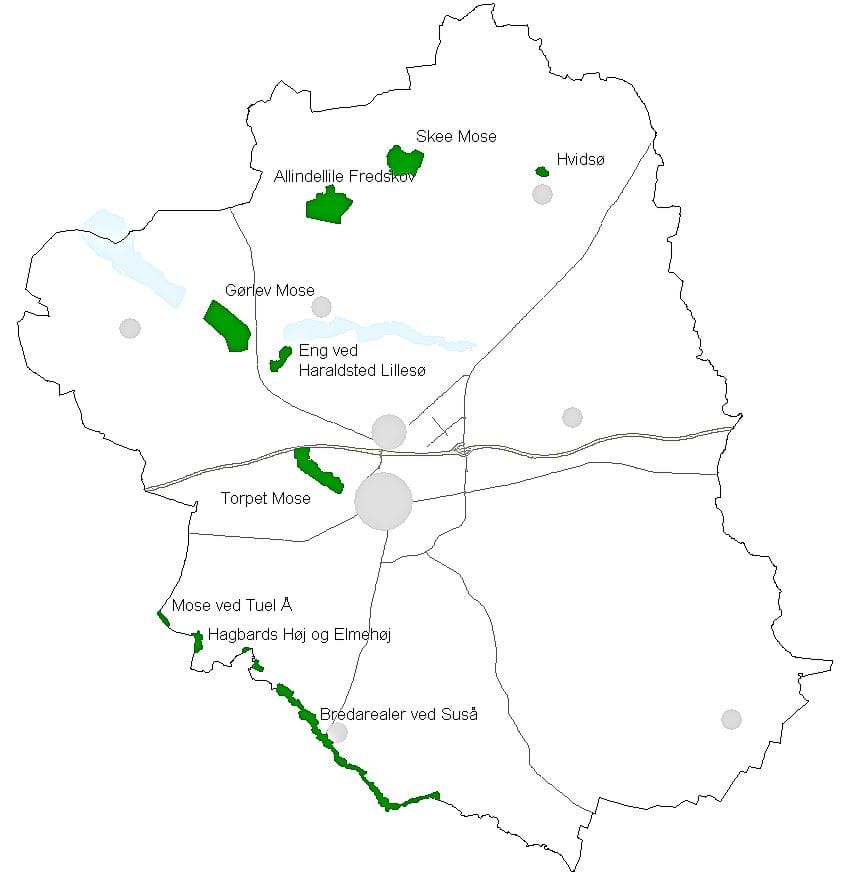 Figur 3.2.1. Bemærkelsesværdige områder i Ringsted Kommune.