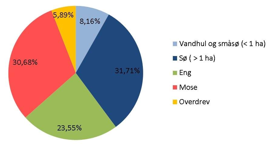 Figur 3.3.4. Procentvis fordeling af §3-områdernes areal i Ringsted Kommune. Data fra Danmarks Miljøportal, kortlag 'Beskyttede naturtyper', 08-2012.